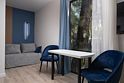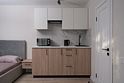 Просторная комната выполнена в современном стиле и включает все необходимое для комфортного проживания: удобную двуспальную кровать, полноценное дополнительное спальное место, оборудованную кухонную зону и ванную комнату. Индивидуальная терраса с видом на море. Номер предназначен для проживания круглый год. с теплым полом.