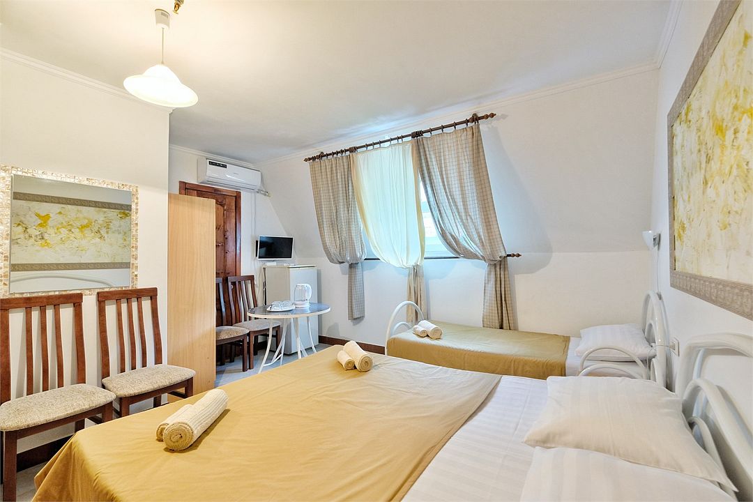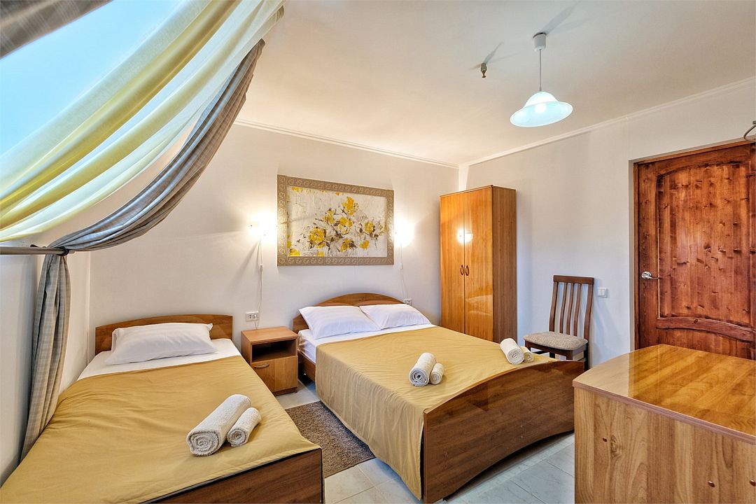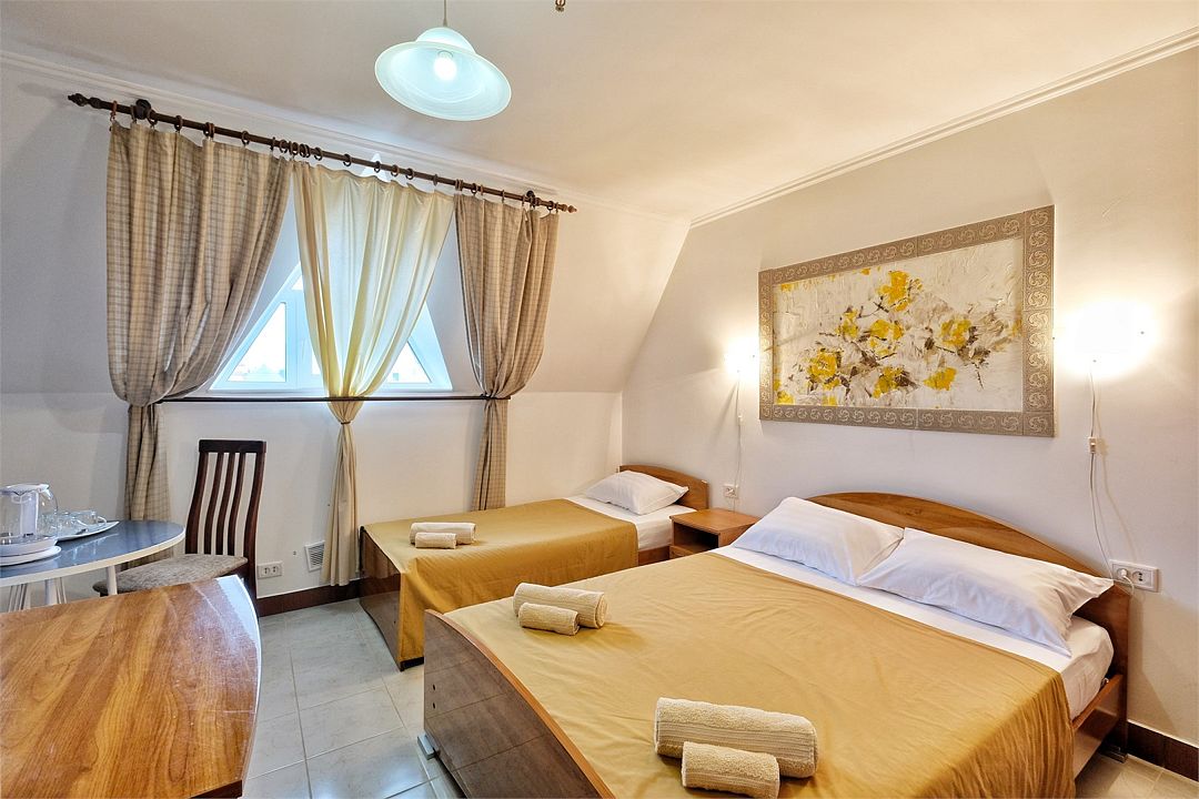 Номер расположен на 1м этаже, подойдет для семьи с одним ребенком, для людей в возрасте.Услуги и удобства