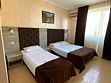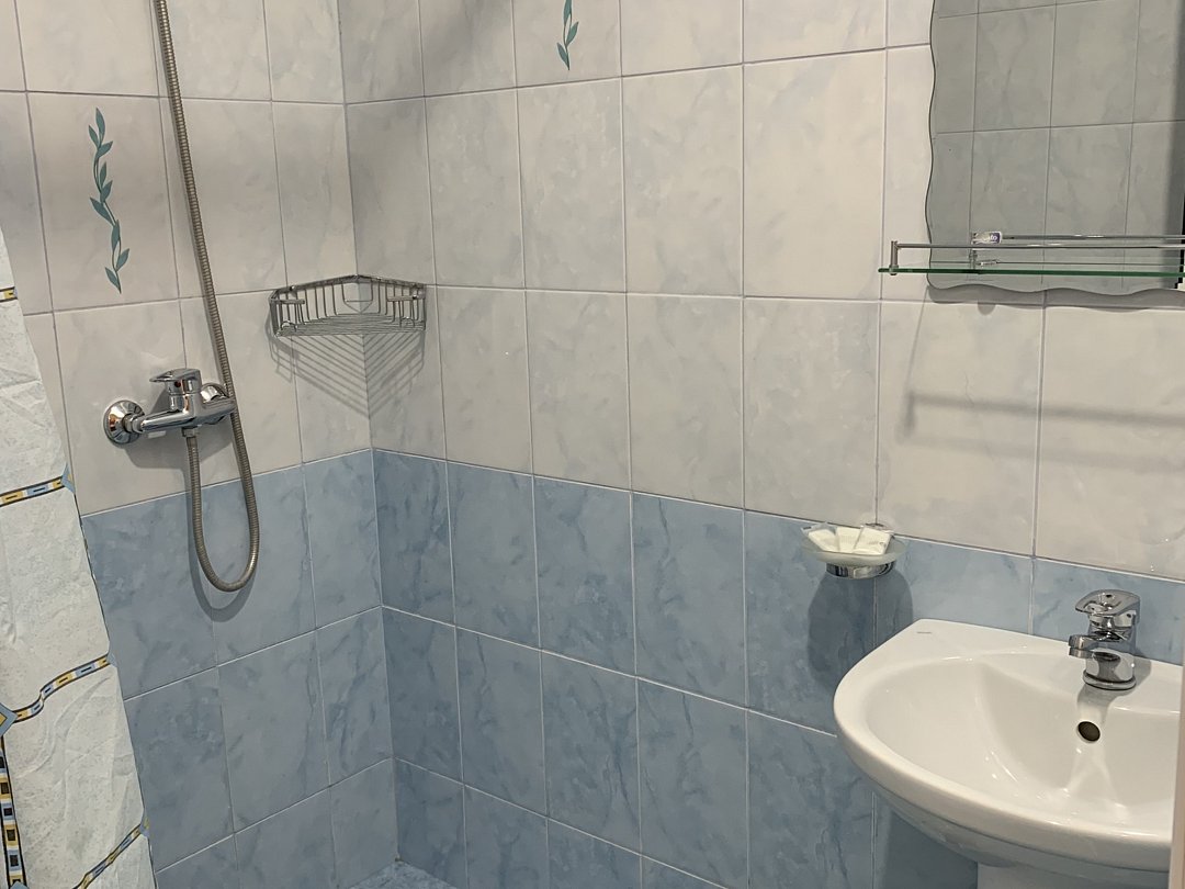 Одно комнатный номер С балконом , балкон выходит на парковку и бассейн Одна кровать двухспальная , одна кровать односпальная Три прикроватные тумбочки Один гардероб Один столик , и два стула Свой сан узел , душевая , умывальник , унитаз Банное и лицевое полотенца на каждого человека , одноразовые тапочки , разовые средства гигиены Телевизор Холодильник Кондиционер WifiВ номере