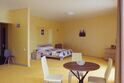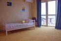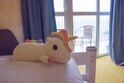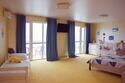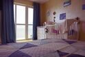Двухуровневый номер для большой семьи. В каждой комнате свой санузел, на втором этаже - ванна с гидромассажем. В номере есть кроватка для малыша до 3 лет, пеленальный столик и стульчик для кормления. А также много игрушек для детишек любого возраста. На каждом этаже собственный балкон с видом на море.