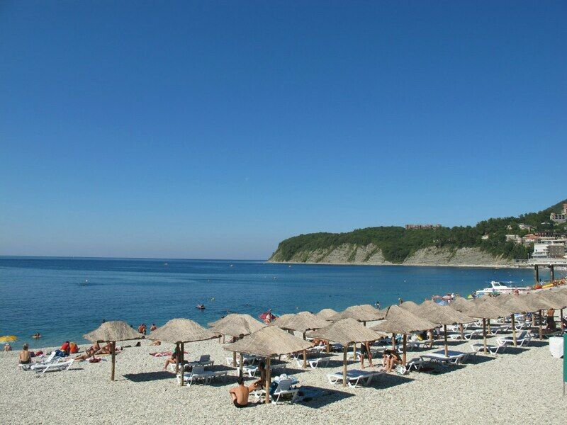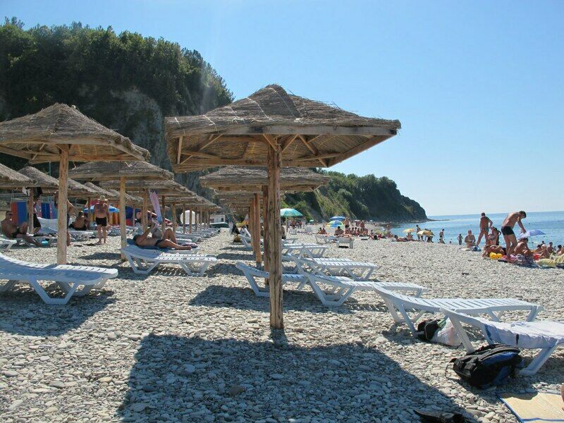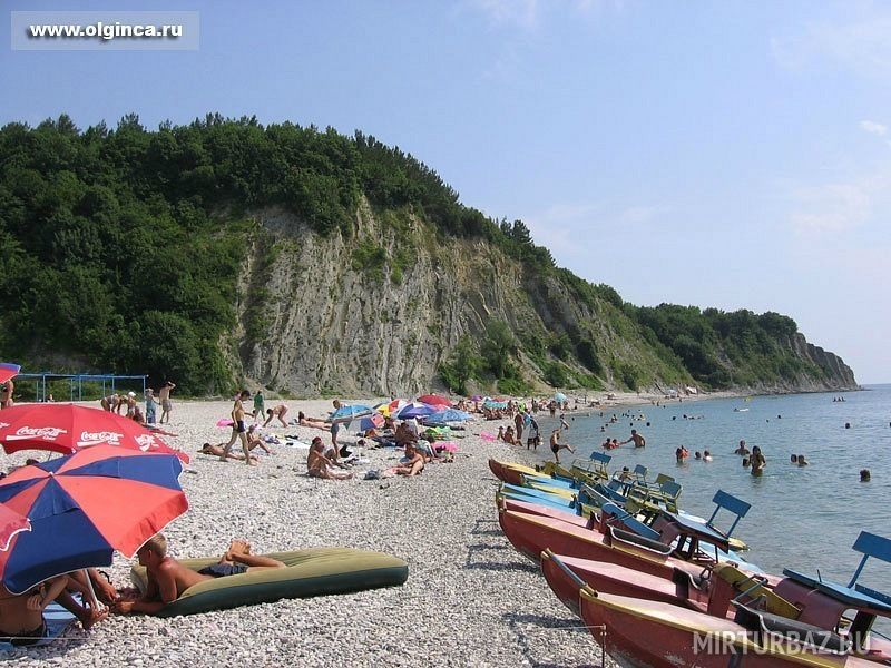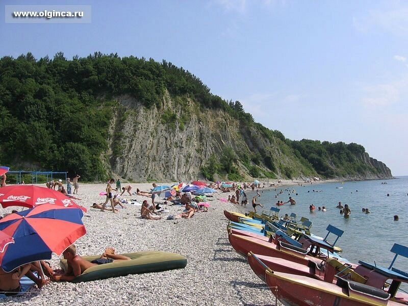 Расположен в экологически чистой бухте Ольгинка, имеет мелкую галечную структуру, оснащен спасательной станцией, душем, туалетом.