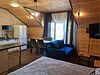 Апартаменты двухкомнатные с одной двуспальной кроватью, двумя односпальными кроватями. Санузел с душевой кабиной. Фен. Кухонная зона с холодильником, плитой, духовым шкафом, посудомоечной машиной, микроволновкой, чайником, посудой. Телевизор, спутниковое ТВ. WiFi. Вид на озеро. Общие: Бар. Сауна.Услуги и удобства