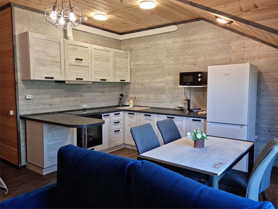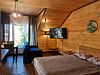 Номер с одной двуспальной кроватью, одной двухъярусной кроватью. Санузел с душевой кабиной. Фен. Обеденный стол. Чайник. Чайные принадлежности. Телевизор, спутниковое ТВ. WiFi. Вид на озеро. Общая кухня. Бар. Сауна.Услуги и удобства