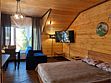Номер с одной двуспальной кроватью. Санузел с душевой кабиной. Фен. Обеденный стол. Чайник. Чайные принадлежности. Телевизор, спутниковое ТВ. WiFi. Вид на озеро. Общая кухня. Бар. Сауна.Услуги и удобства