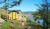 Умывальники - в отдельном здании, туалеты - на улице. На террасе у домика - столик со скамьей.