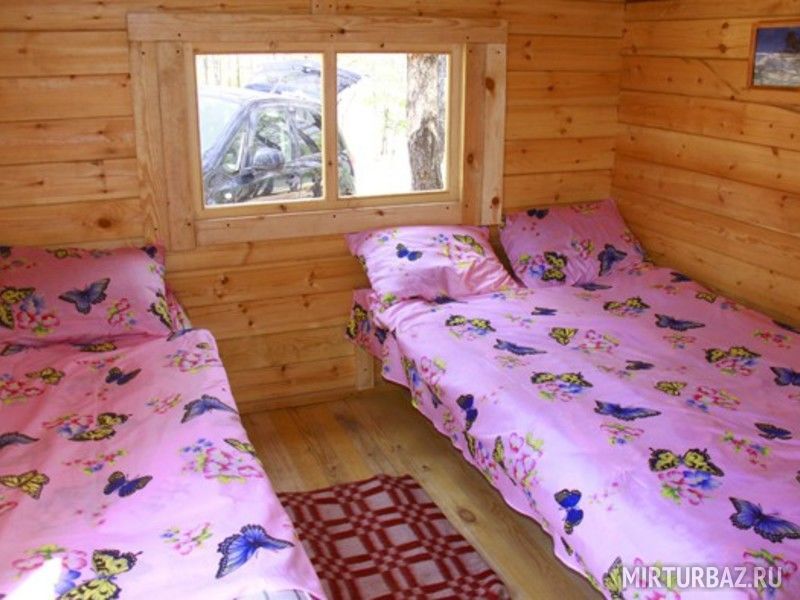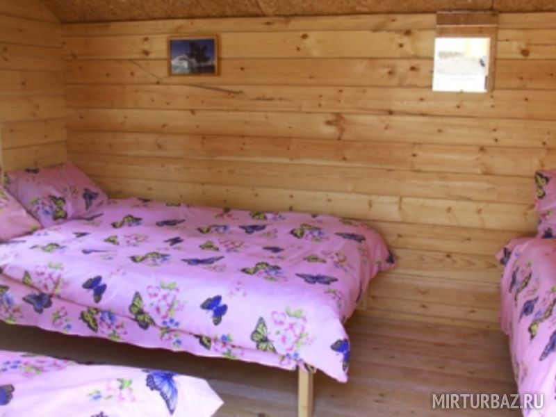 В домике: энергоснабжение, кровати, стол, зеркало, вешалка для одежды. Все удобства на территории. В душевой комнате – холодная и горячая вода.