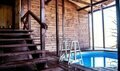 Банный комплекс с комнатой отдыха и бассейном на террасе.