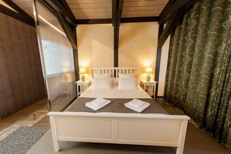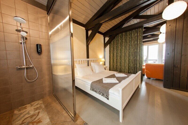 Просторный номер с открытой планировкой (54 кв. м). Номер поделён на две функциональные зоны: спальню и гостиную.