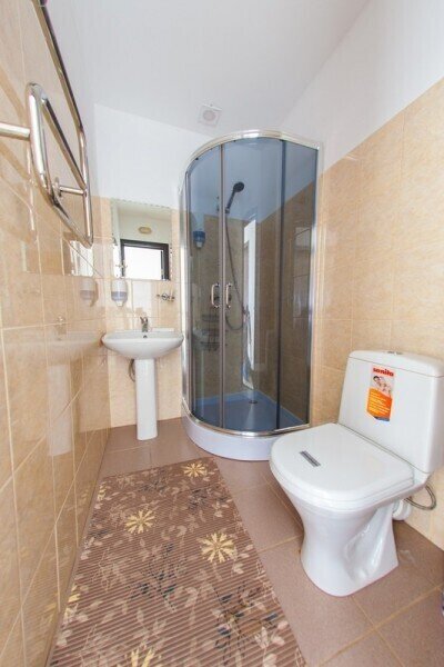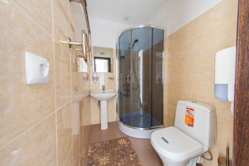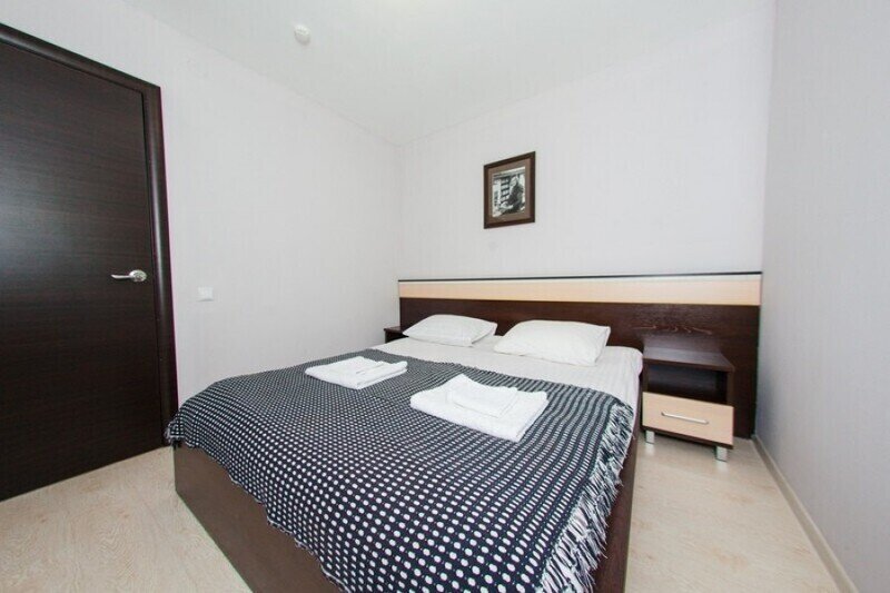 Однокомнатный 2-х местный номер 18 кв. м. с двумя раздельными кроватями или одной двуспальной кроватью, санузел с душевой кабиной, полотенце, спутниковое ТВ, холодильник, необходимая для проживания мебель. Выход на общую террасу.