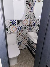 Удобная зона приема пищи предусмотрена отдельно от основной гостиной зоны. Ванная комната оснащена современной сантехникой и предметами первой необходимости: туалетными принадлежностями, гигиеническими средствами, полотенец комплектом, халатами и тапочками.