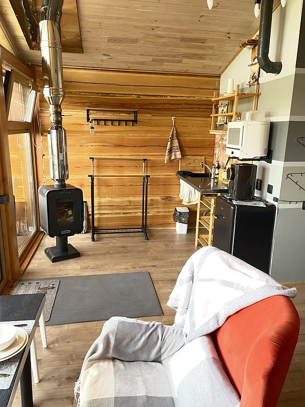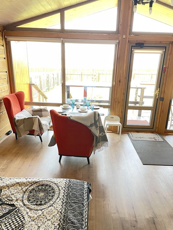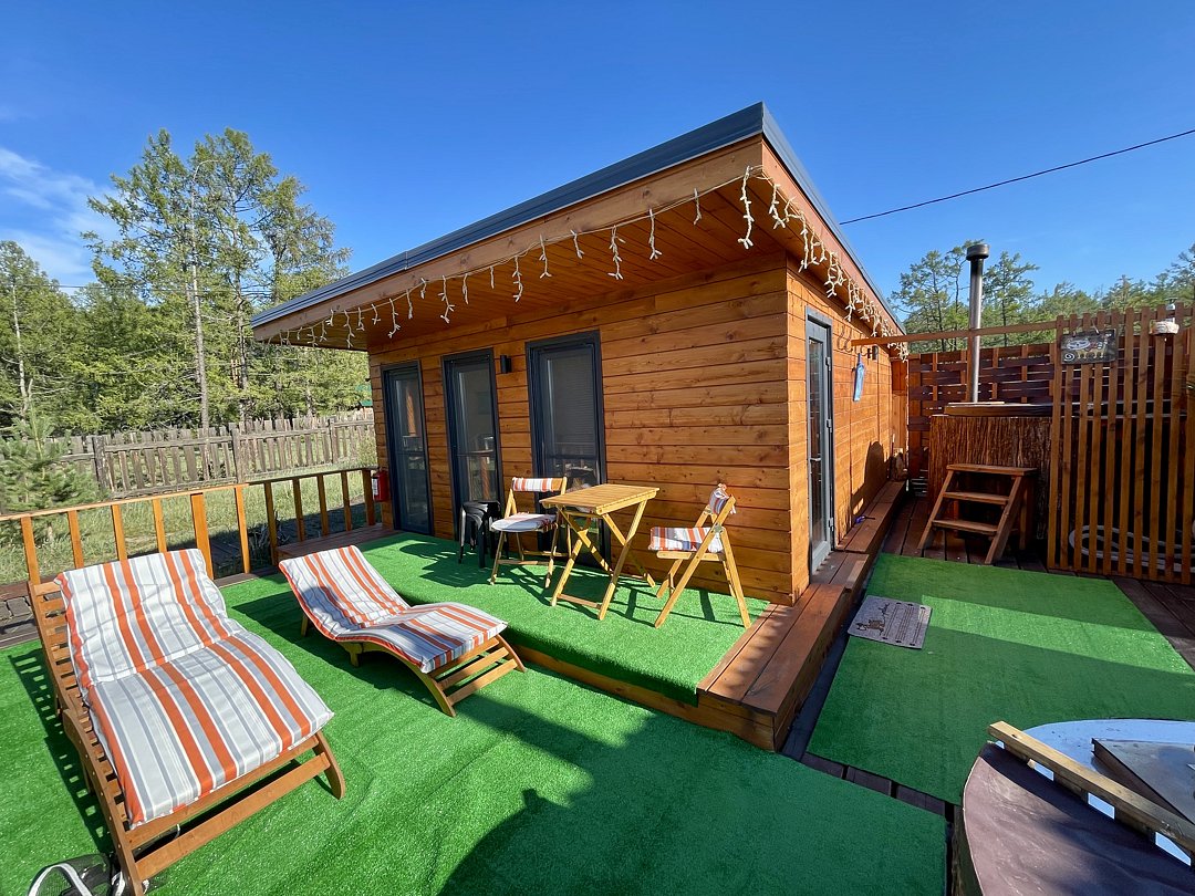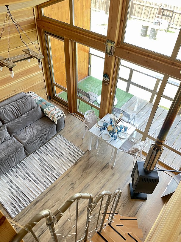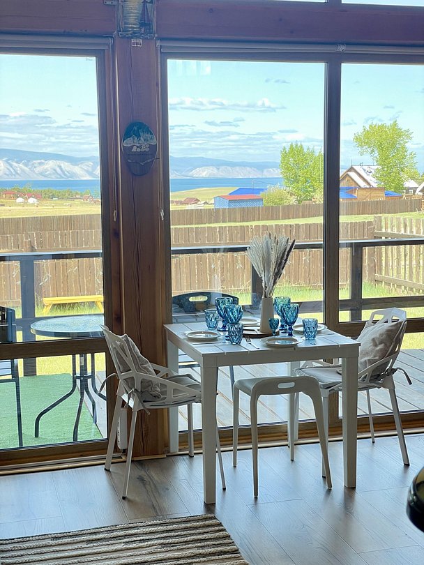 Дома обеспечены современной мебелью, стильной посудой, удобными матрасами, белоснежным постельным бельем, пледами, необходимой бытовой техникой и всем, что требуется для комфортного проживания. Из окон открывается великолепный вид на Байкал, горы и лес, окруженные природой.
