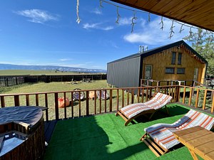 Читать полностьюГостям предлагается уникальная японская водяная баня Фурако, изготовленная из целебного сибирского кедра, который придает ей приятный естественный аромат. Парение под открытым небом, усыпанным звездами, создает атмосферу глубокой релаксации и гармонии с природой. Вместительность — до восьми человек.
