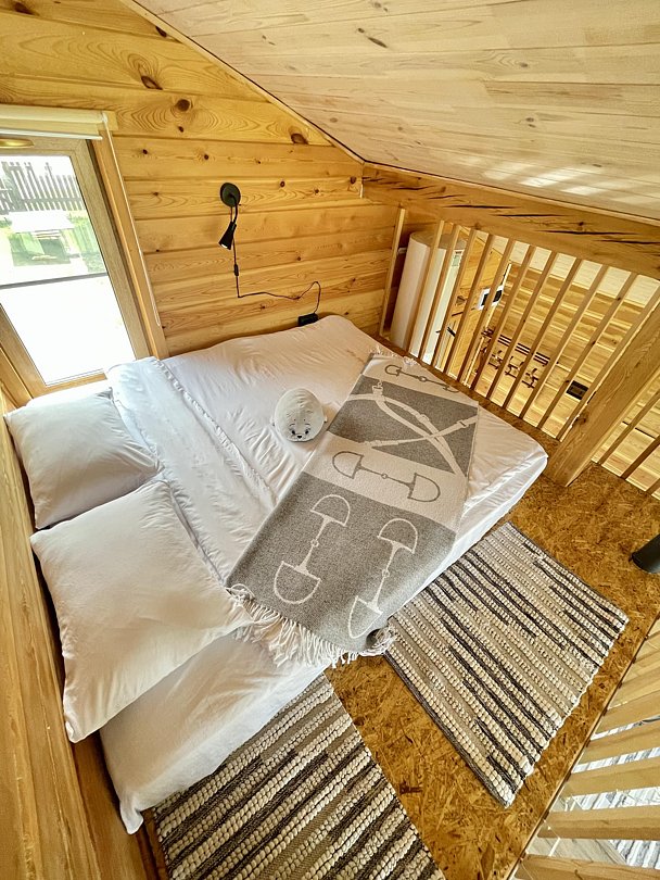 Второй этаж: спальная зона представлена качественным двуспальным ортопедическим матрацем, рассчитанным на отдых двух взрослых гостей, плюс дополнительно предусмотрено размещение еще троих гостей с предоставлением удобных раскладных диванов/мебели в зоне первого этажа.