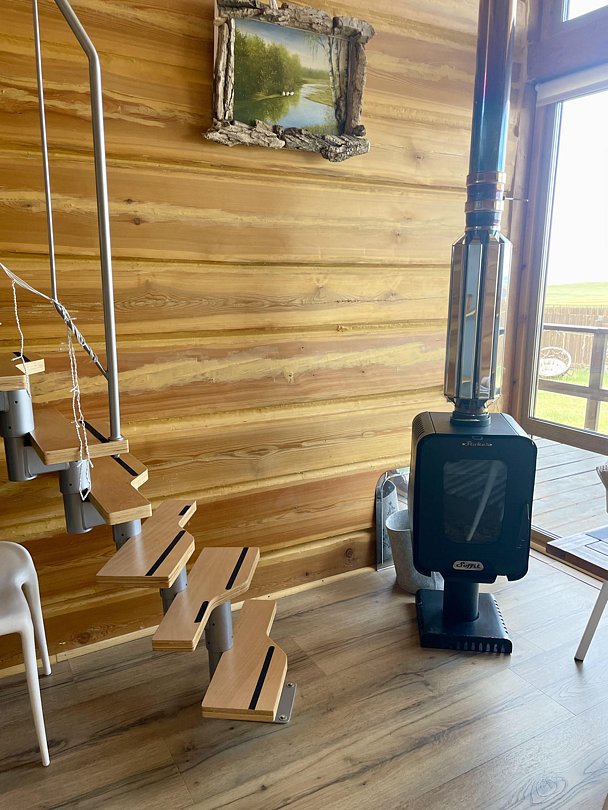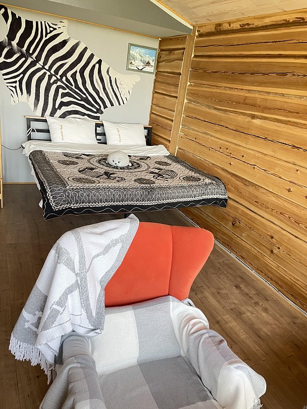 Вот подробная характеристика номера: интерьер: номер обустроен зоной отдыха с камином, мини-кухней и парящей кроватью. Полноценный санузел обеспечивает комфортное проживание. Мини-кухня: Холодильник, микроволновка, набор посуды и приборов, чайник-термос. Водоснабжение — есть доступ к питьевой воде прямо из-под крана.