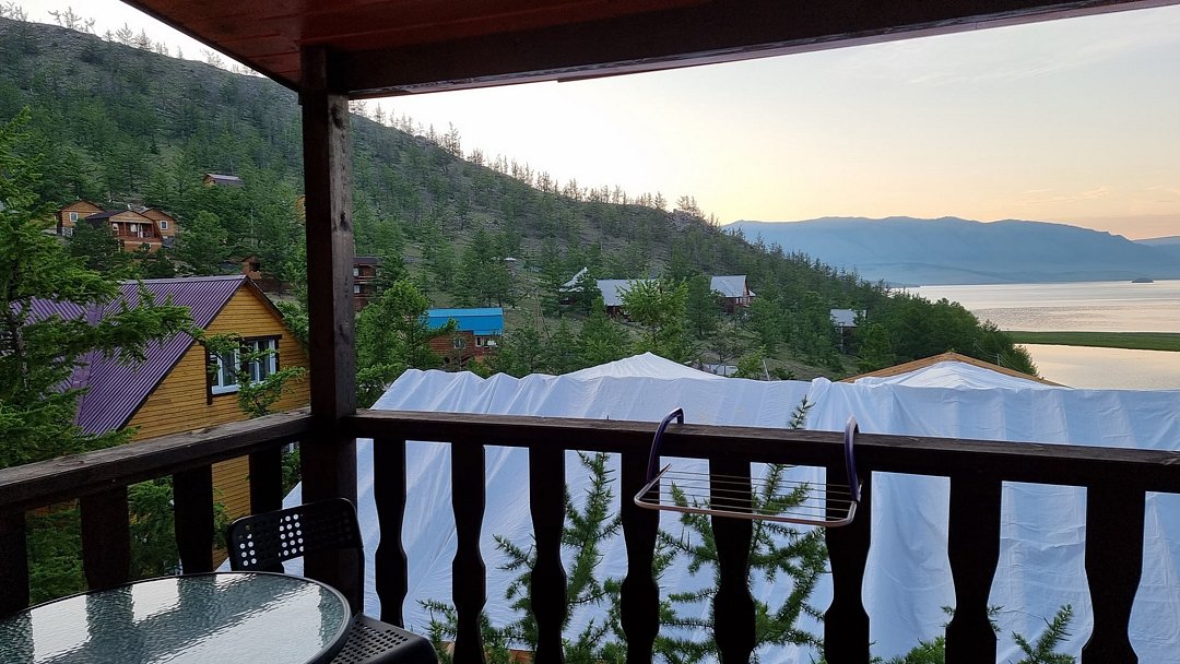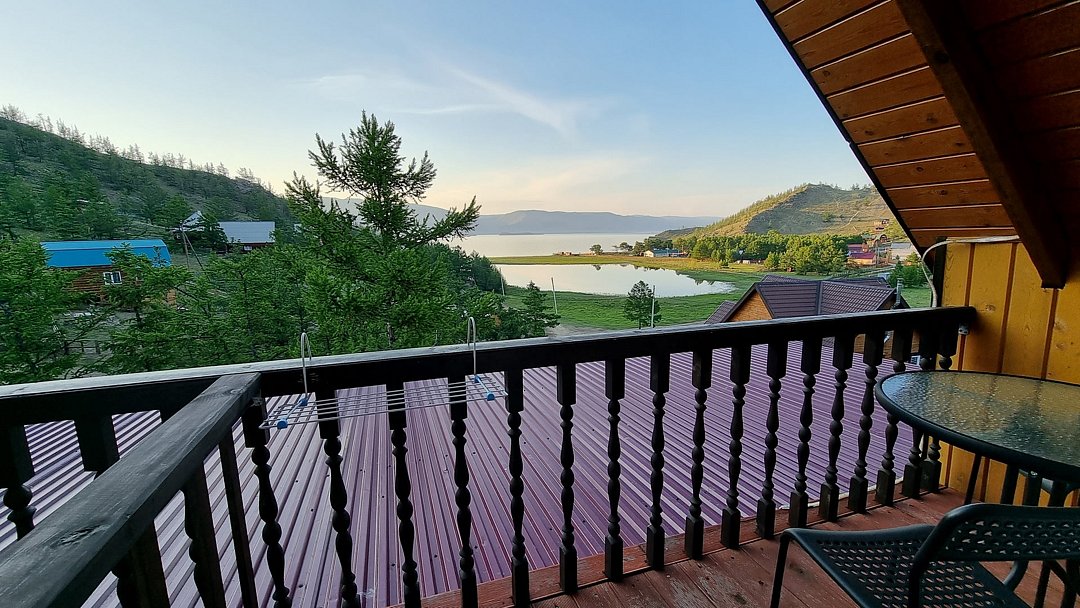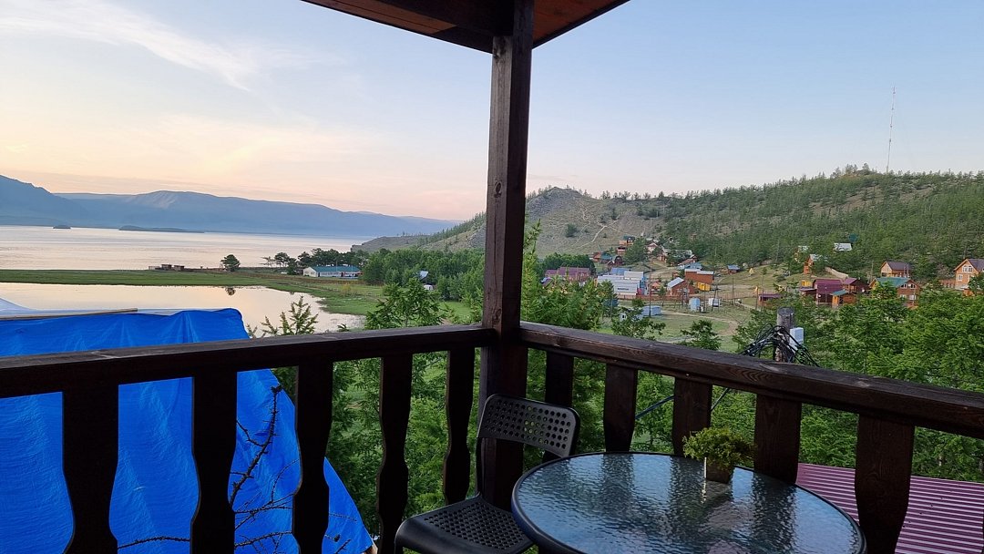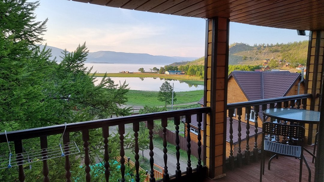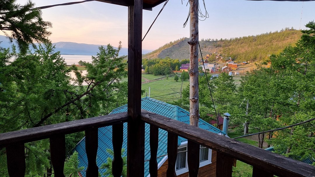 Гостевой дом находится в 500 метрах от о. Байкал. Берег бухты - песчаный. Вода в заливе, за счет относительно небольшой глубины, прогревается с самого начала лета и остается теплой вплоть до осени. На территории размещения гостевого дома, в отличие от многих иных бухт, повсюду произрастают реликтовые лиственницы, которые позволяют скрыться от солнца в жаркое время суток.