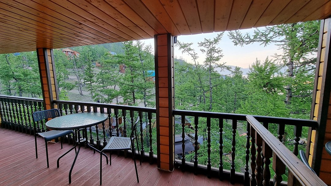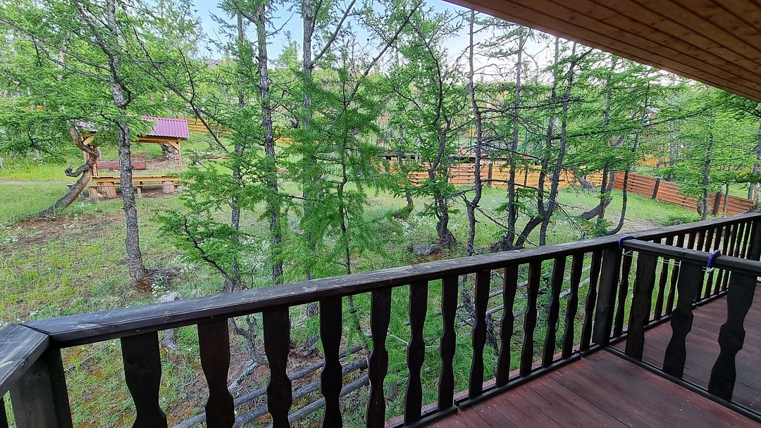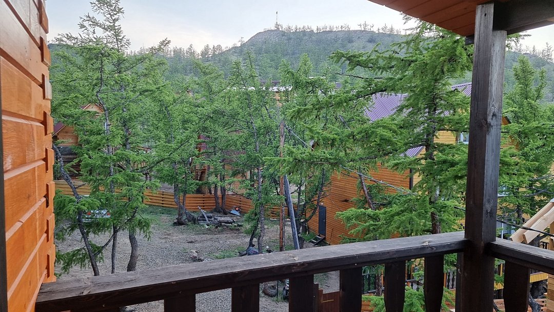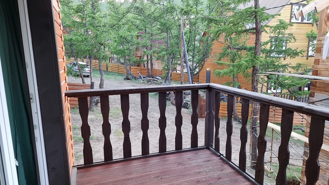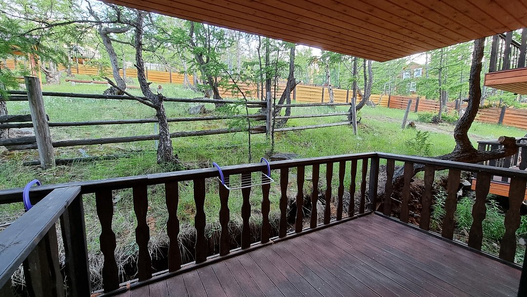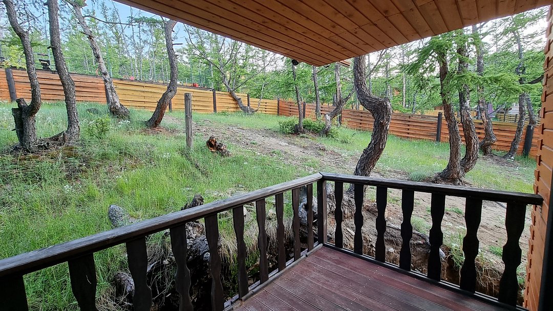 Гостевой дом находится в 500 метрах от о. Байкал. Берег бухты - песчаный. Вода в заливе, за счет относительно небольшой глубины, прогревается с самого начала лета и остается теплой вплоть до осени. На территории размещения гостевого дома, в отличие от многих иных бухт, повсюду произрастают реликтовые лиственницы, которые позволяют скрыться от солнца в жаркое время суток.