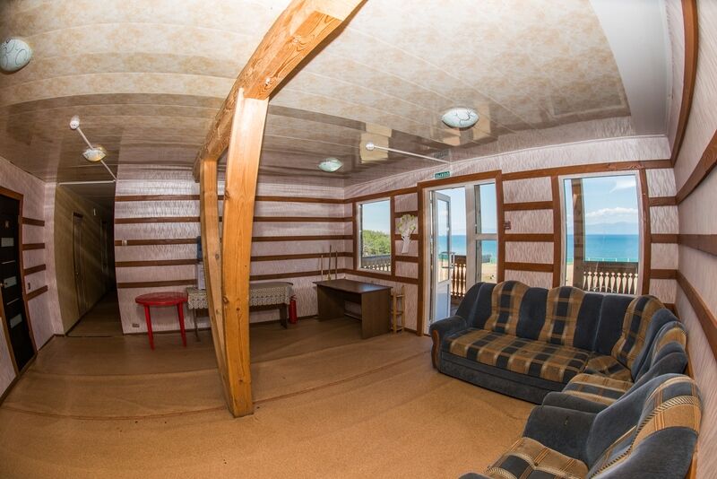 Номер люкс размещён на 2 этаже в бревенчатом доме из сибирской лиственницы. Номер двухкомнатный, с отдельным туалетом ванной и умывальником. 2 балкона с чудесным видом на Байкал. В номере 2 шкафа, диван-кровать, большая двухспальная кровать, журнальный столик, кухня, обеденный стол. 4 стула.