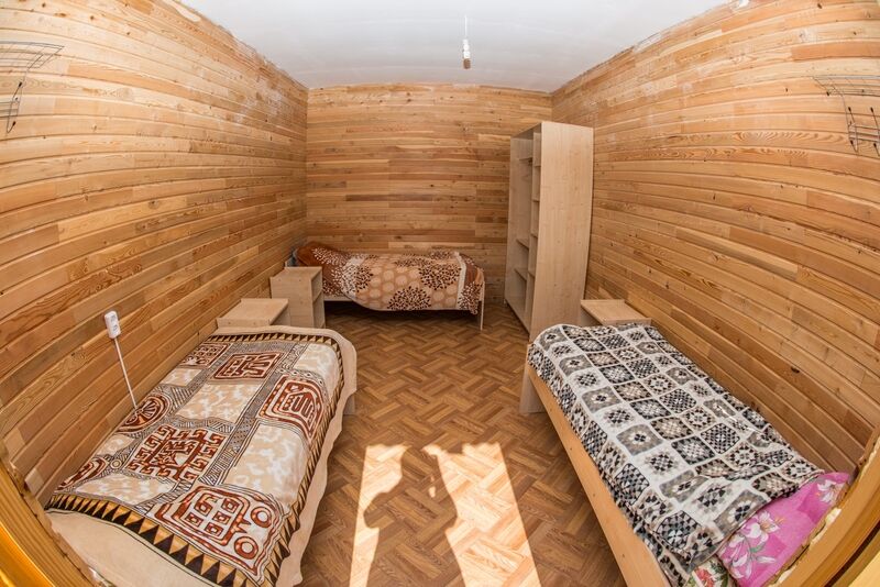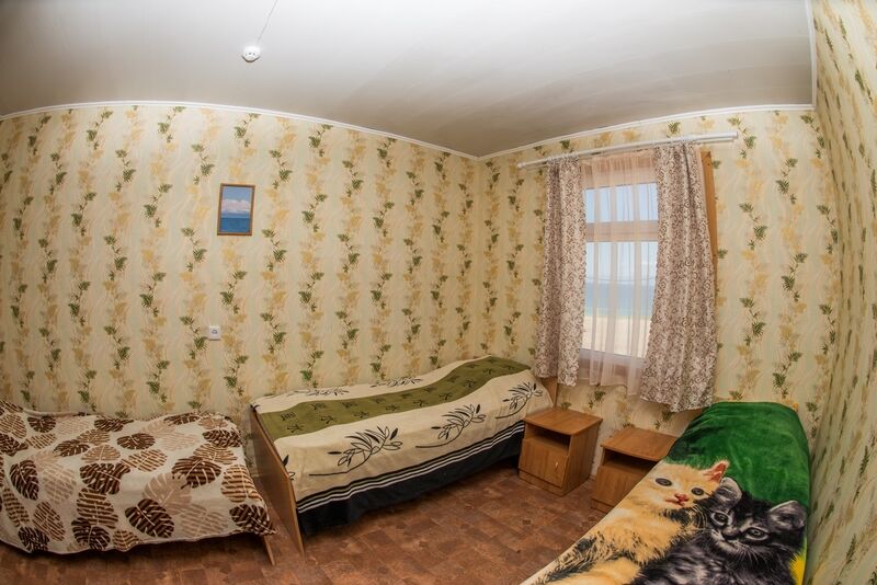 У каждого номера отдельный выход на улицу. В номере 3 кровати, шкаф, прикроватные тумбы, стол 3 стула, графин с водой стаканы. Удобства туалеты души умывальники расположены в смежном здании.