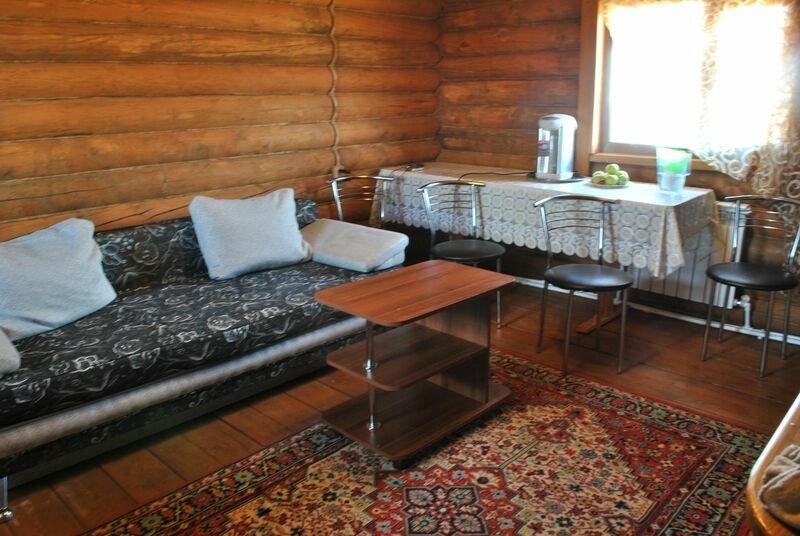 Номер люкс размещён на 1 этаже в бревенчатом доме из сибирской лиственницы. Номер двухкомнатный, с отдельным туалетом душем и умывальником. В номере 2 шкафа, диван-кровать, большая двухспальная кровать, журнальный столик, холодильник, чайник, обеденный стол. 4 стула.