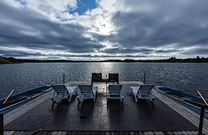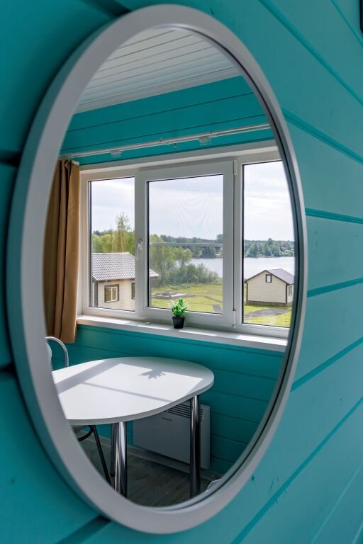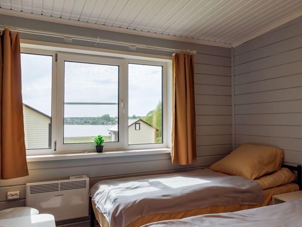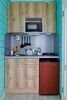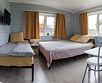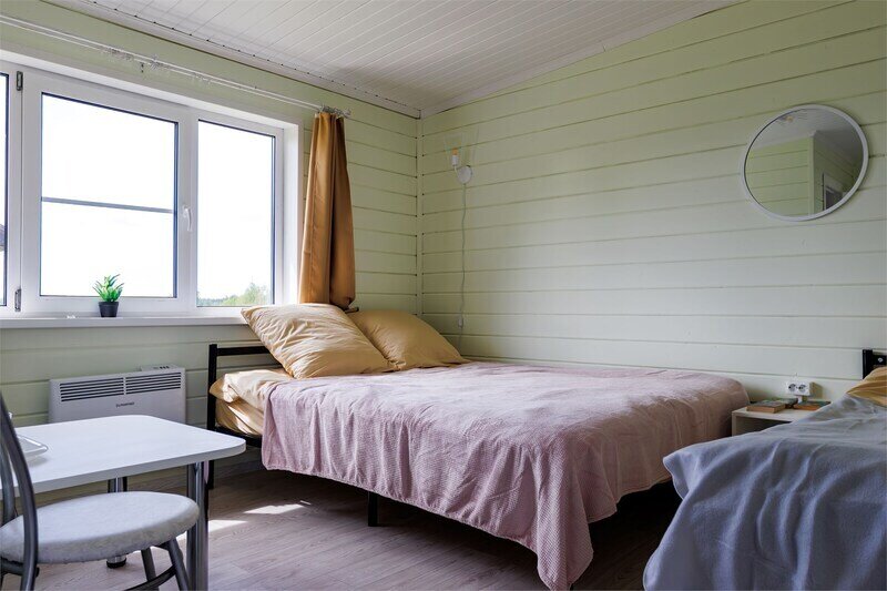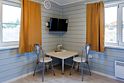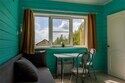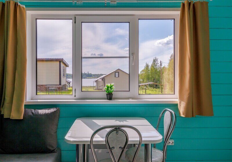 Комфортный номер с двуспальной кроватью и отдельной односпальной. В корпусе гостиницы располагается отдельная кухня столовая со всем необходимым для приготовления и приёма пищи с видом на озеро.