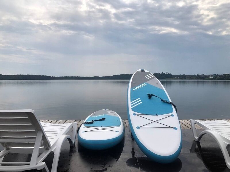 Вы можете посетить баню, порыбачить, арендовать лодку или SUP-доску. Также на территории базы отдыха есть игровая площадка для детей.