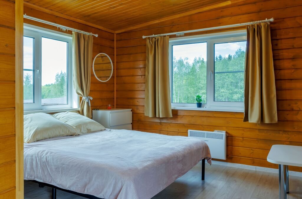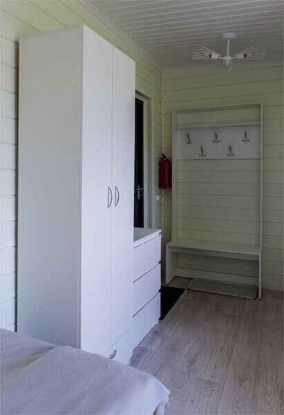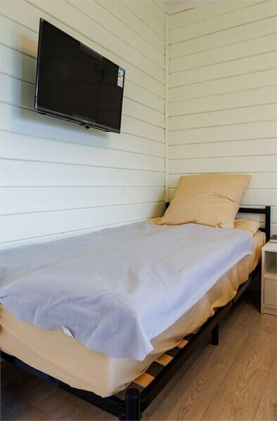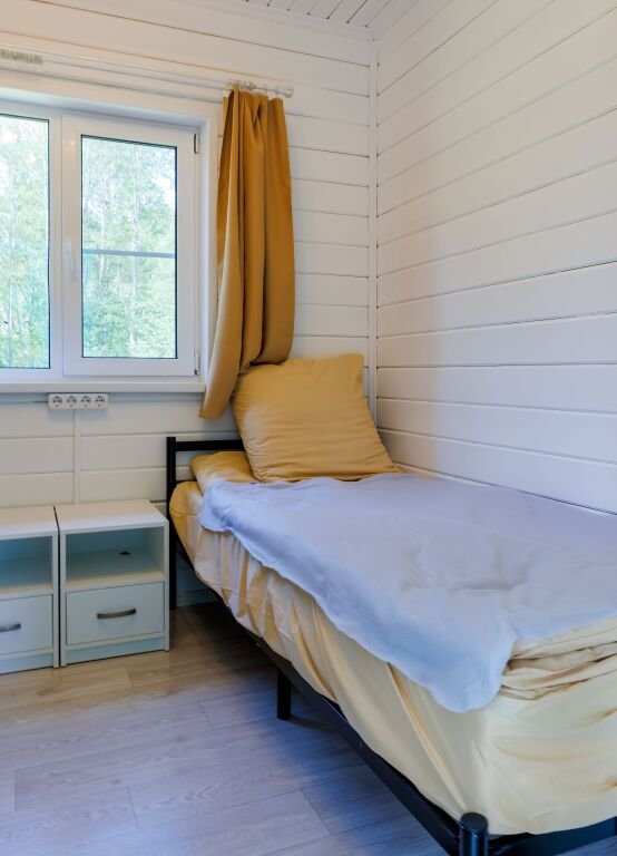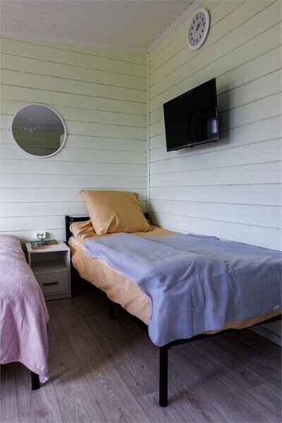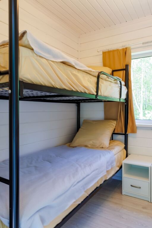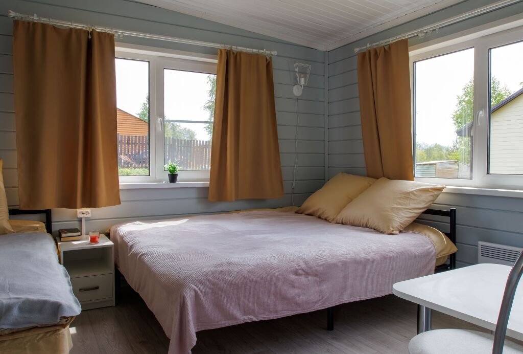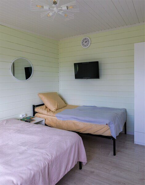 Коттедж с двумя отдельными комнатами и кухней гостиной, в которой удобно разместится дружная компания или большая семья. В одной из комнат располагается двухъярусная кровать и отдельно стоящая односпальная кровать, в соседней комнате полноценная двуспальная комфортная кровать. В Кухне гостиной расположился раскладной диван и удобная мини кухня со всем необходимым.