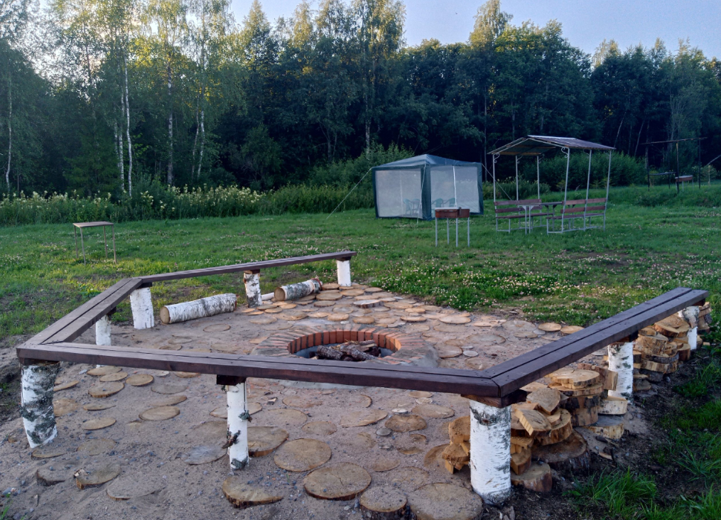 На базе есть место для уютных вечеров возле костра под гитару на берегу озера.
