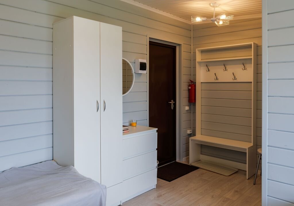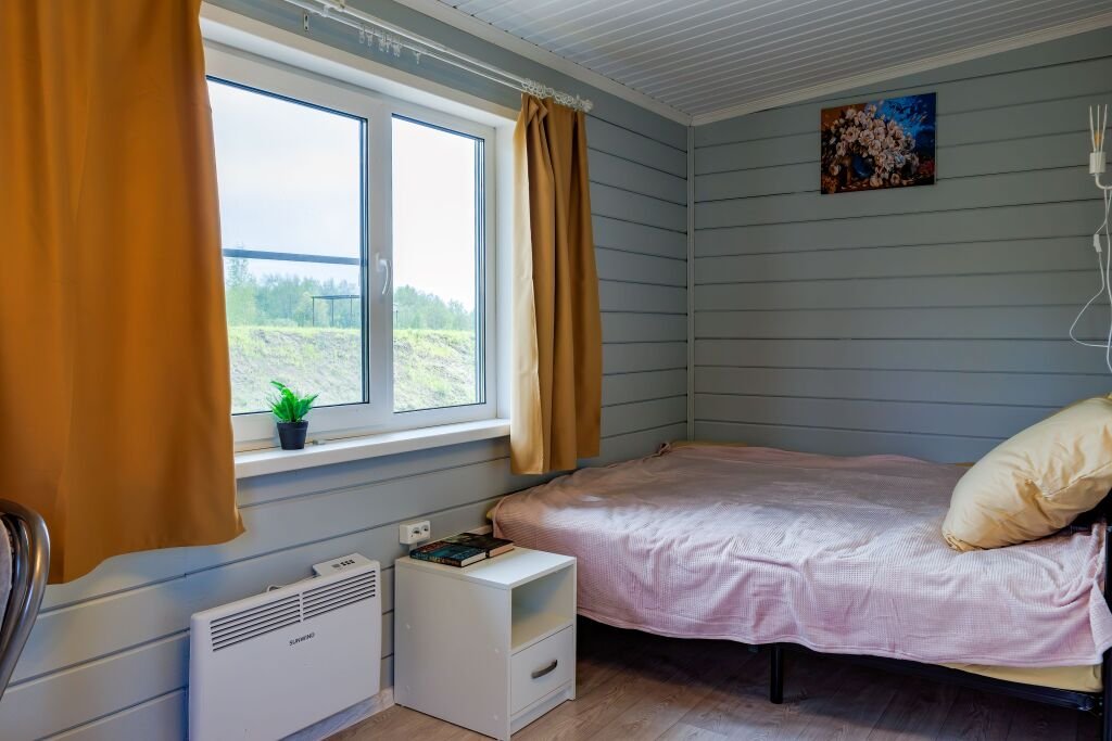 Комфортный номер с двуспальной кроватью. имеющий прямой вид на озеро и на Карельский лес. В номере есть душ и туалет. В корпусе гостиницы располагается отдельная кухня столовая со всем необходимым для приготовления и приёма пищи с видом на озеро.