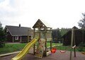Маленькие гости могут провести время на оборудованной игровой площадке, которая включает в себя горку, качели, песочницу, мини-скалодром.