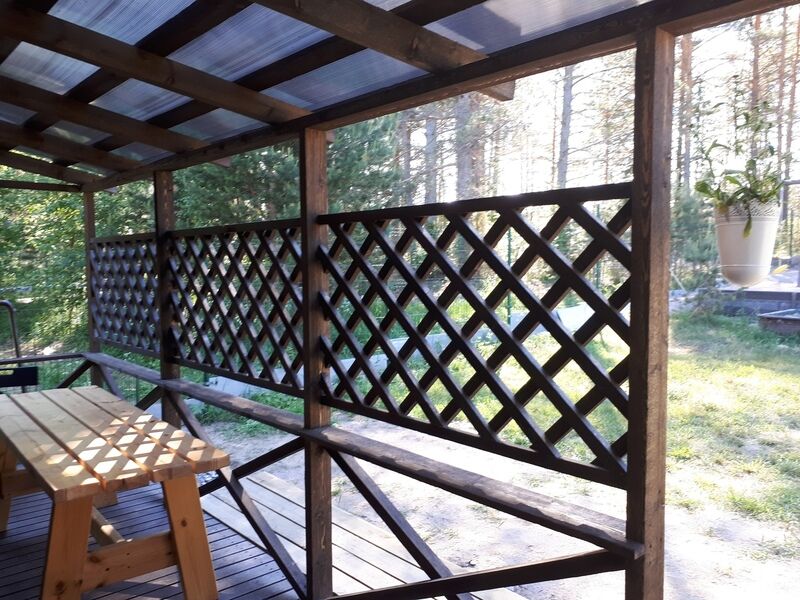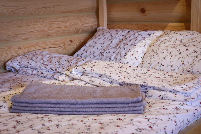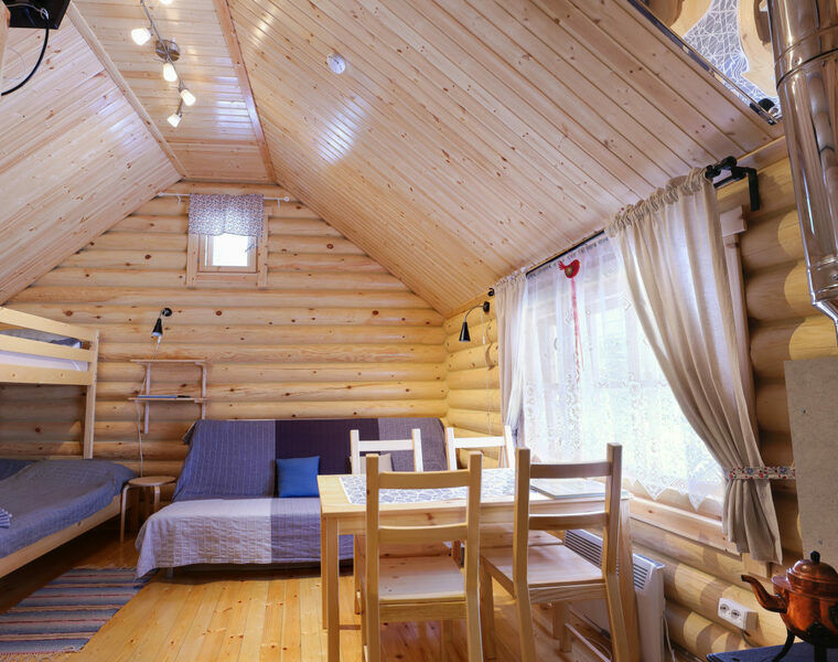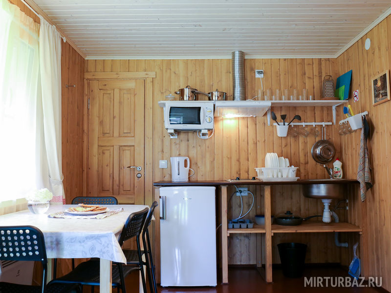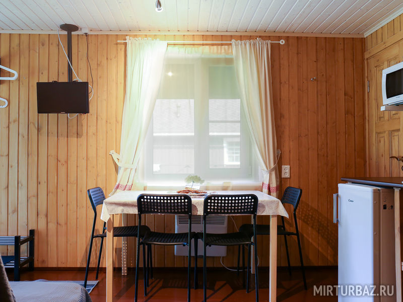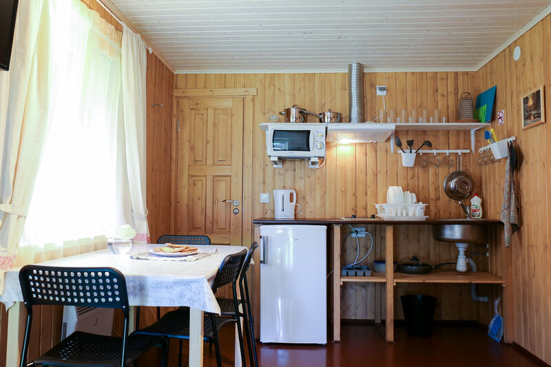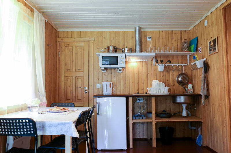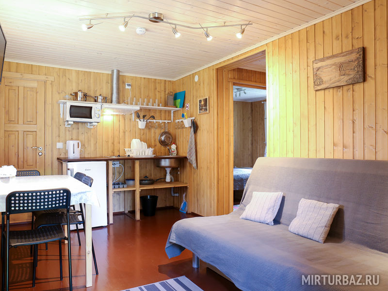 Гости проживают в коттеджах их натурального дерева. Благодаря этому постояльцы будут крепко спать и легко дышать. Даже мебель в домах выполнена из карельского дерева. В каждом доме есть терраса и все необходимые условия для комфортабельного проживания. Все номера гостевого дома оснащены чайником.