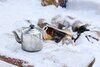 2 обеденных стола, холодильник, кухонная панель с мойкой; электрическая плита с вытяжкой, микроволновая печь, чайник, шкаф для посуды, русская печь, ТВ, полный набор кухонной и столовой посуды;