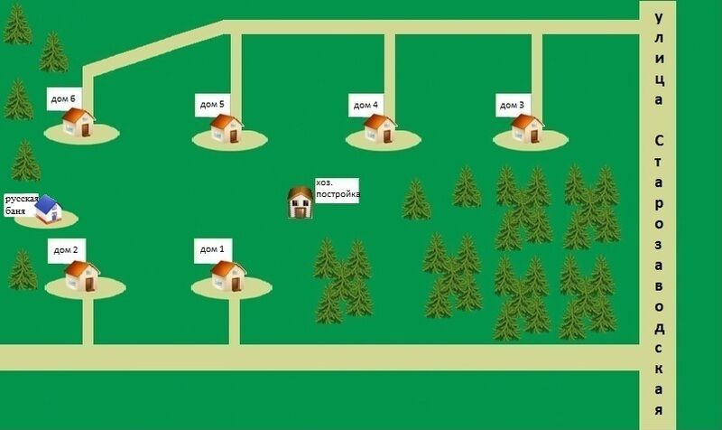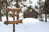 - На повороте вы увидите указатель Гостевые дома «Алавойне»