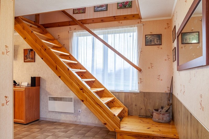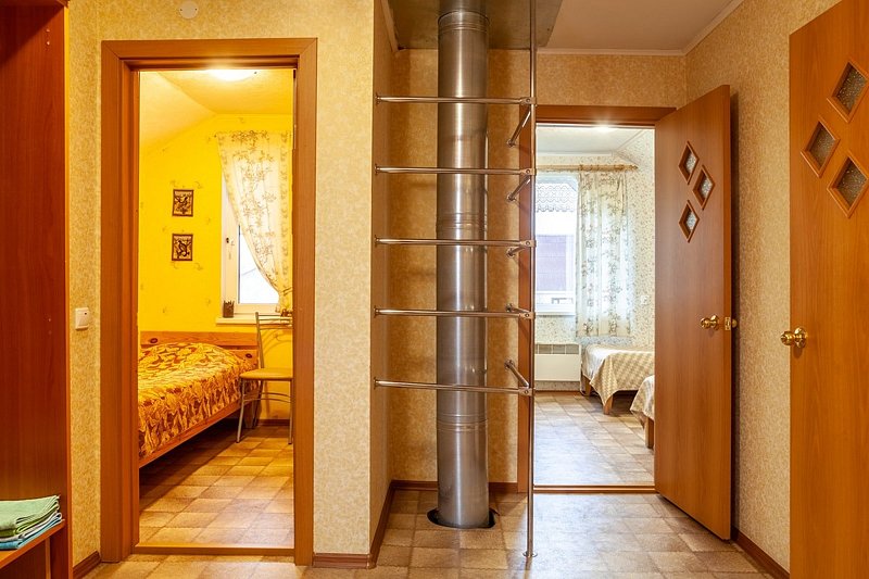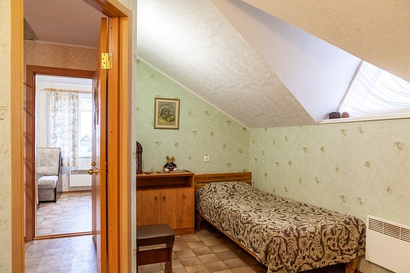 На втором этаже – три спальные комнаты (6 мест: в 1-местной, 2-х местной и 3-х местной), душ, стиральная машина и второй санузел.