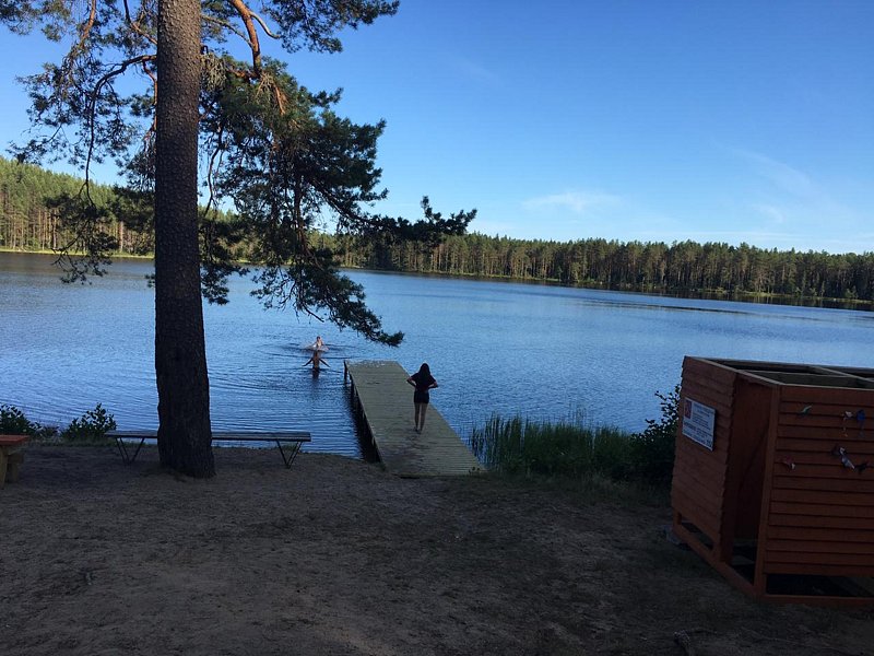 Дом в д. Сяндеба.. цокольный этаж: котельная, эл.сауна, душевая кабина и небольшая комната отдыха. На 1 этаже спальня с 2 кроватями, кухня с холодильником, микроволновкой, 4 комф. газовой плитой. Туалет. Комната отдыха с дровяной печью "бавария", телевизор, диван.на 2 этаже туалет, 3 спальни. В 1 спальне 4 кровати, во 2 спальне 2 кровати, в 3 спальне 2 кровати и диван. В спальнях шкафы для одежды. Отопление, эл котел в цок этаже. Верхний этаж эл печи. Внизу у озера/180 м/ баня на дровах, пирс.