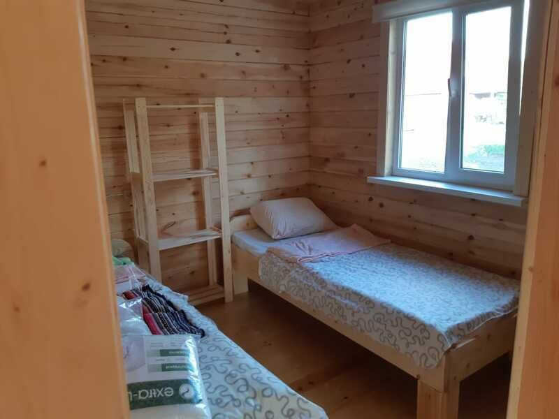 Двухэтажный домик с большой гостиной.Кухня и удобства в домике. Домик находится в 20 метрах от реки Видлица.