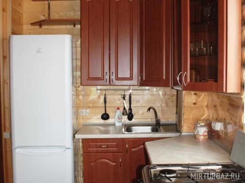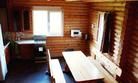 На 1 этаже коттеджа имеется кухня-гостиная с камином. В доме есть спутниковое телевидение. В спальне двуспальная кровать. Есть туалет с раковиной, душ. Кухня оборудована всем необходимым: газовой и индукционной плитой, холодильником, микроволновкой. Есть посуда, столовые приборы.