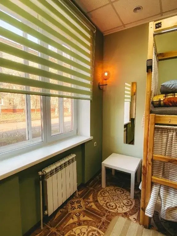 Кровать в общем номере с видом на город