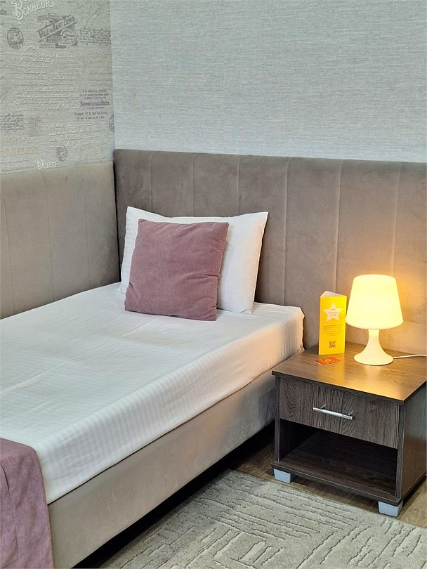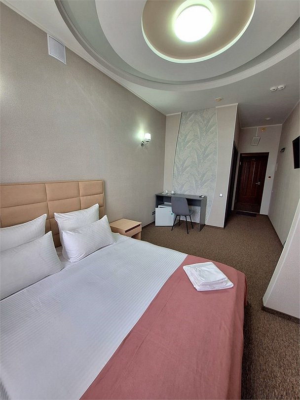 Однокомнатный номер общей площадью 15 м2 с односпальной кроватью размером 90 × 200 см. В номере имеется все необходимое для работы и отдыха: телевизор, холодильник, рабочая зона.Услуги и удобства