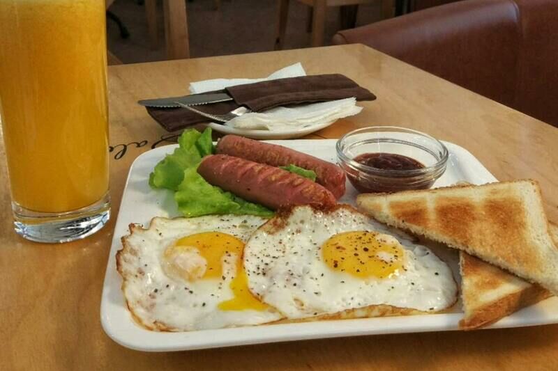 Номер небольшой, но все аккуратно и компактно. Есть кухня - можно готовить самим. Рядом есть кафе.
