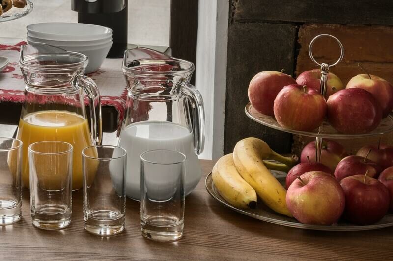 В общем лаундже — каминная зона и вид на город; каждое утро подаётся континентальный завтрак с домашней выпечкой.