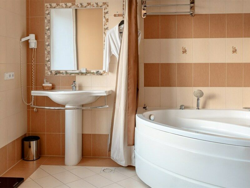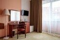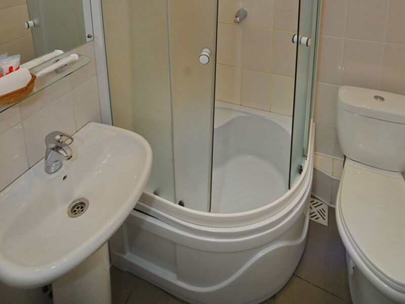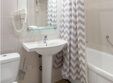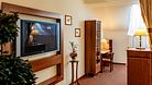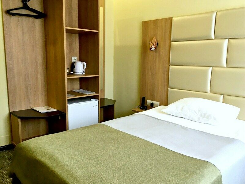 1,5-спальныая кровать, ТВ, холодильник, кондиционер, сейф, чайный набор, фен, тапочки, халаты, гигиенические принадлежности, с/у с душем.