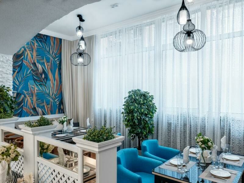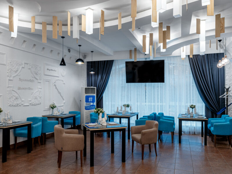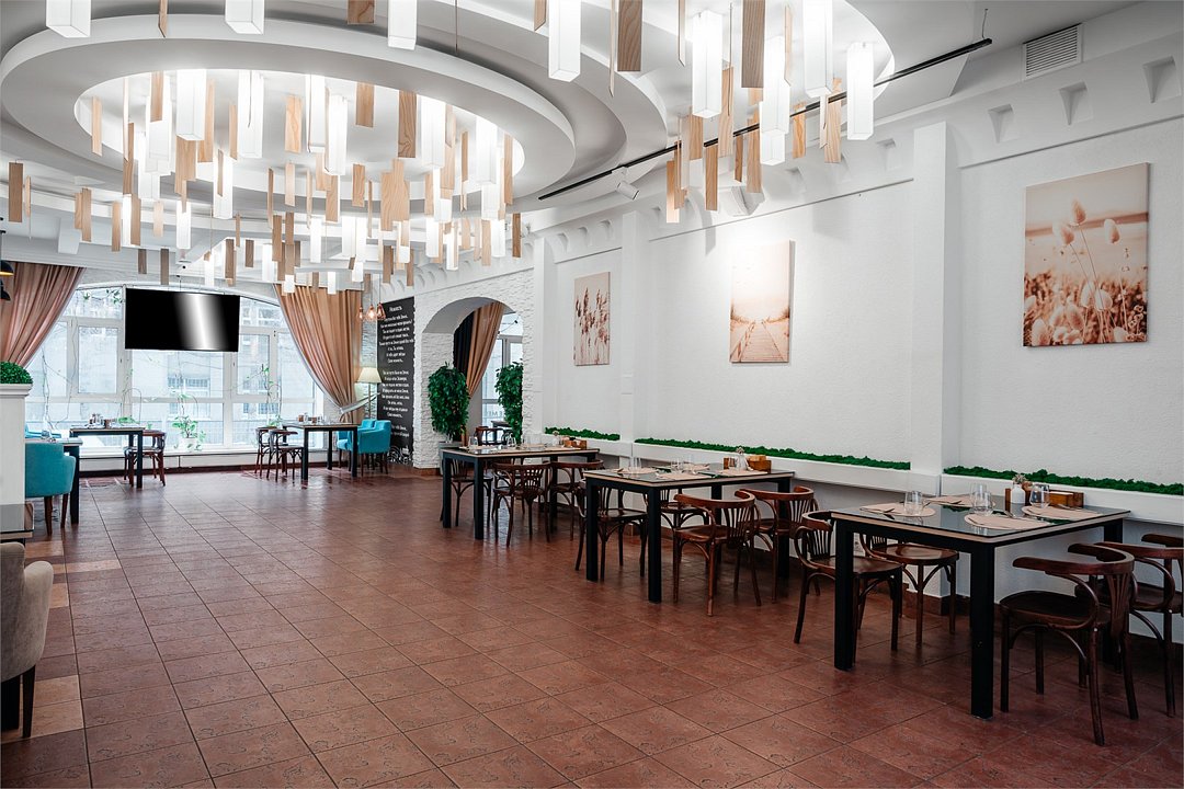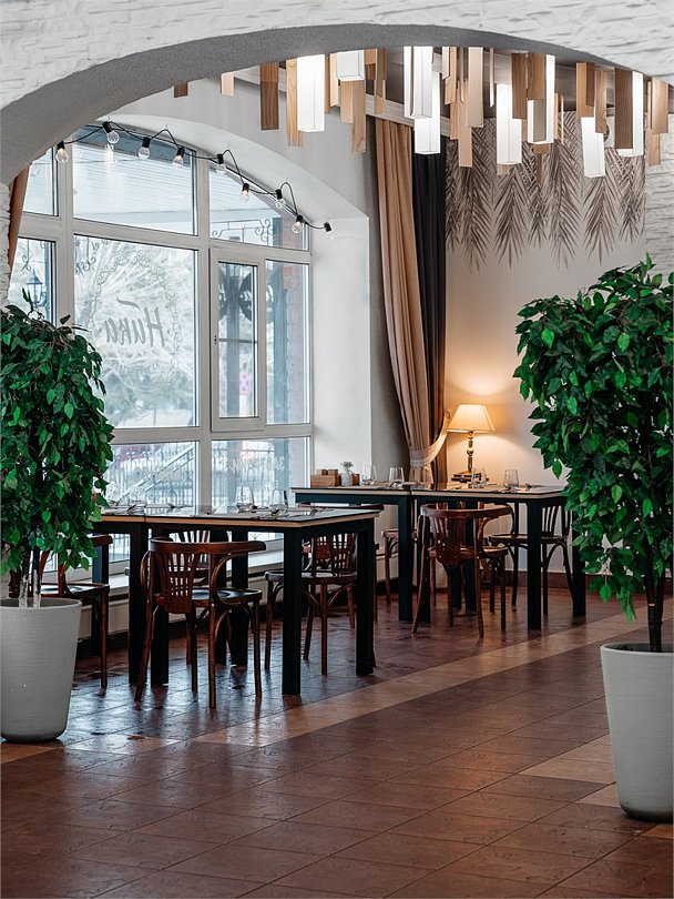 На первом этаже расположен ресторан, неповторимая атмосфера которого порадует изысканной кухней, современным интерьером и лёгким джазовым музыкальным сопровождением, способствующим приятному отдыху.