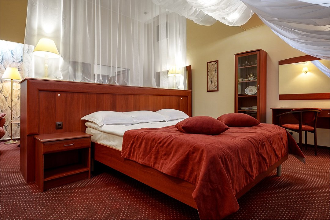 Просторный и удобный номер категории Супериор Ника, с большой двуспальной кроватью и ванной с джакузи.Услуги и удобства