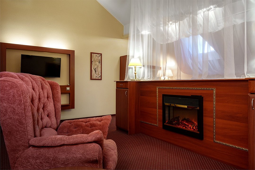 телевизор, Wi-Fi, телефон, кондиционер, фен, электронные замки, обогреватель, ванная комната, душевая кабина, санузел, халаты, банные полотенца, тапочки, гигиенические средства, две полутораспальные кровати, кресла, тумбы, шкаф для одежды, вешалки, журнальный столик, зеркало, камин, свежая пресса, чайный набор, обслуживание номеров, сейф, чайник, унитаз, раковина, мягкая мебель, питьевая вода, гостиная зона, отопление, душ, вид на город, вид во двор, стаканы, тумба, туалетные средства, туалет, мини-холодильник, гостиничная парфюмерия, шапочка для душа, мыло, без питомцевВ гостиничном номере