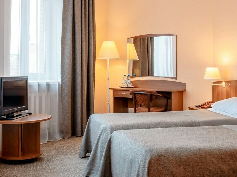 2 односпальные кровати, ТВ, холодильник, кондиционер, сейф, чайный набор, фен, тапочки, халаты, гигиенические принадлежности, с/у с душем.