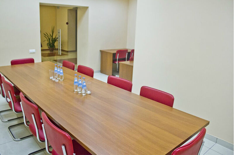 Бизнес-центр вместимостью до 15 чел. Подойдет для проведения переговоров, совещаний и др. Оснащен системой кондиционирования, всем необходимым оборудованием и телефонной связью.