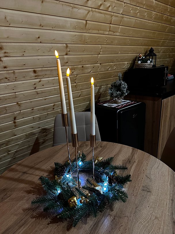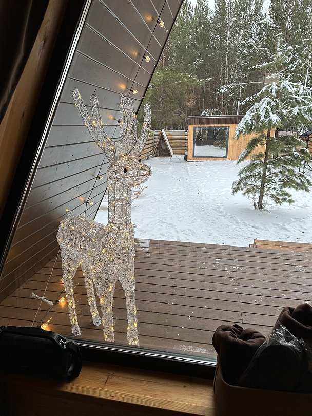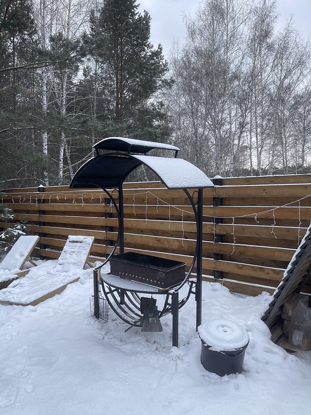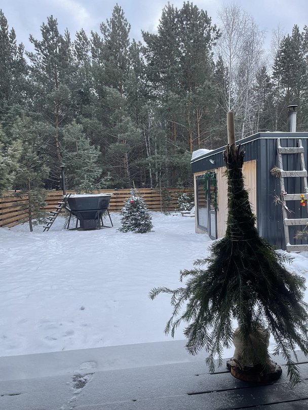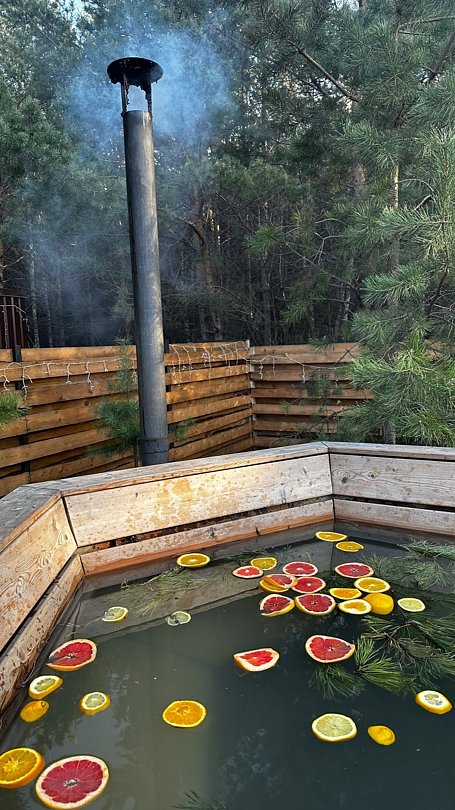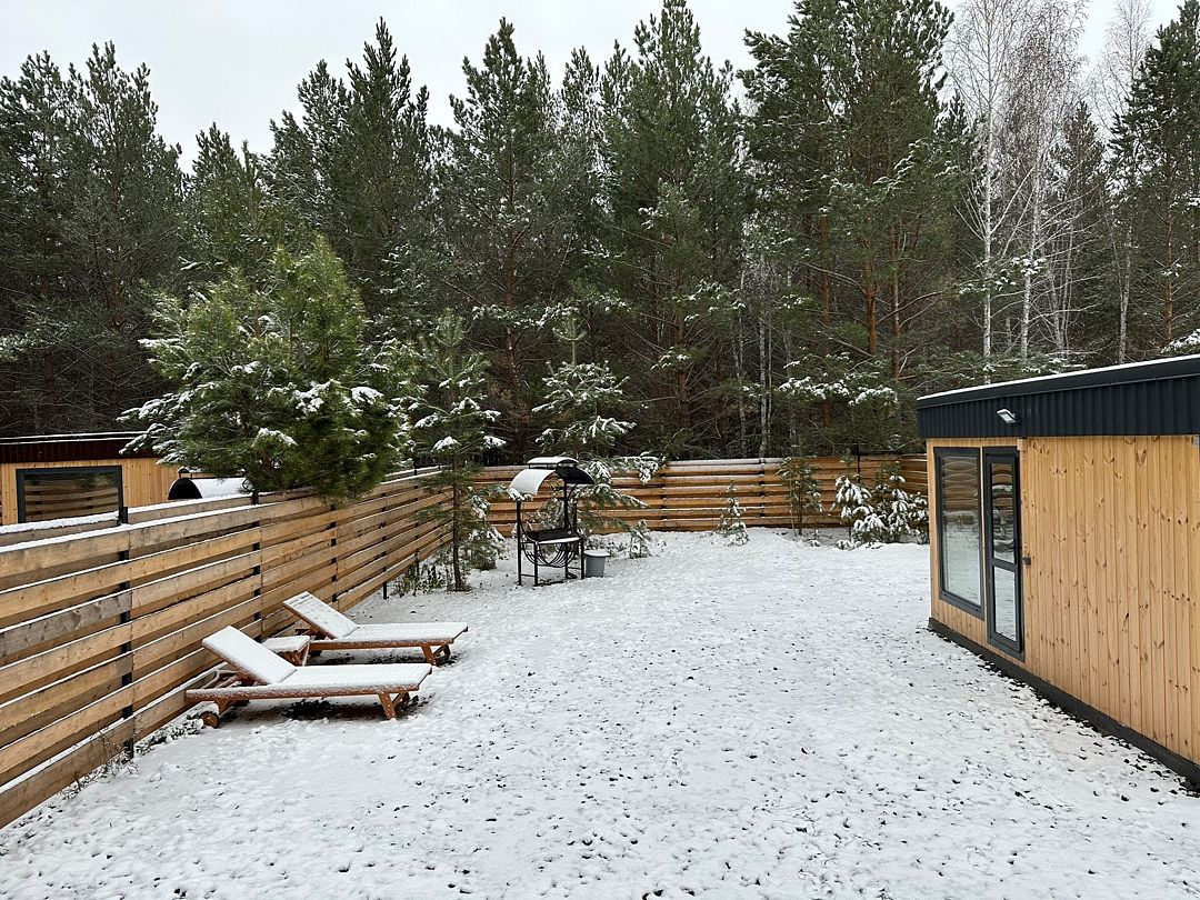 Семейный отдыхДостоинстваСпасибо большое за такой прекрасный отдых, нам с семьёй очень понравилось. В доме есть всё необходимое для комфорта. Рядом лесок, можно погулять пофотографироваться, Чан очень понравился, стоит своих денег, необычное чувство когда вокруг зима, а тебе тепло. В общем всё круто. Рекомендую однозначно!