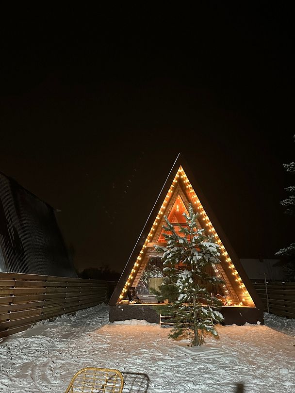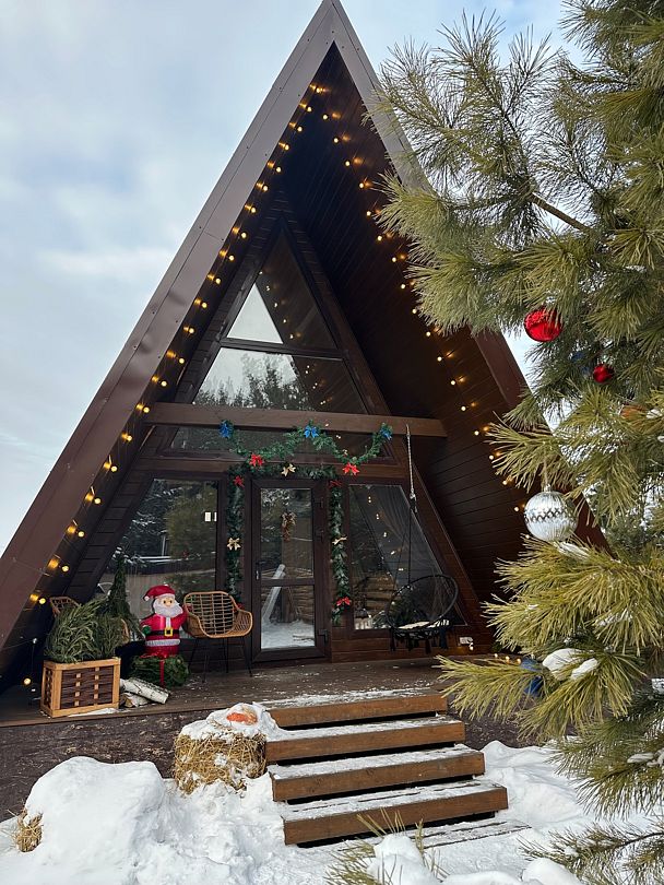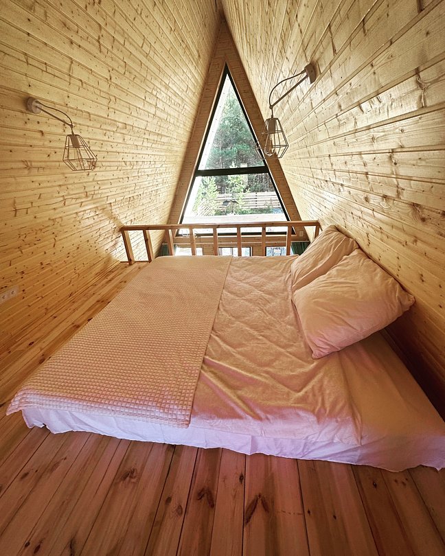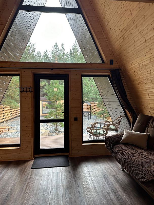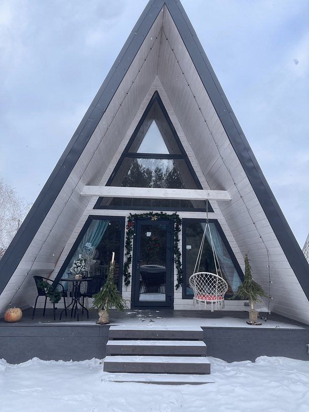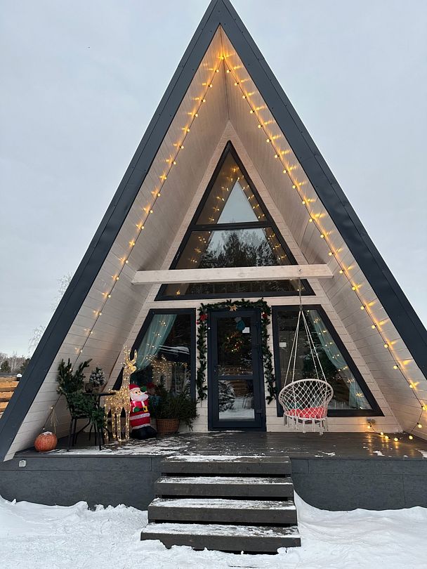 Устали от городской суеты и мечтаете о единении с природой? Новый, комфортабельный A-frame домик — это ваше идеальное убежище. Расположенный в живописном уголке, на опушке соснового леса, он дарит тишину и гармонию каждому, кто ищет покоя. Этот уютный треугольный дом прекрасно подходит как для романтических пар, так и для семейного отдыха.