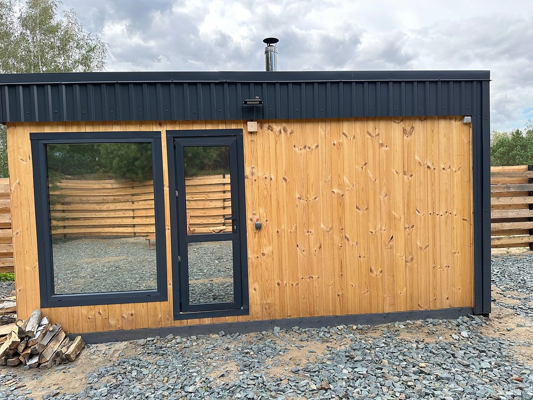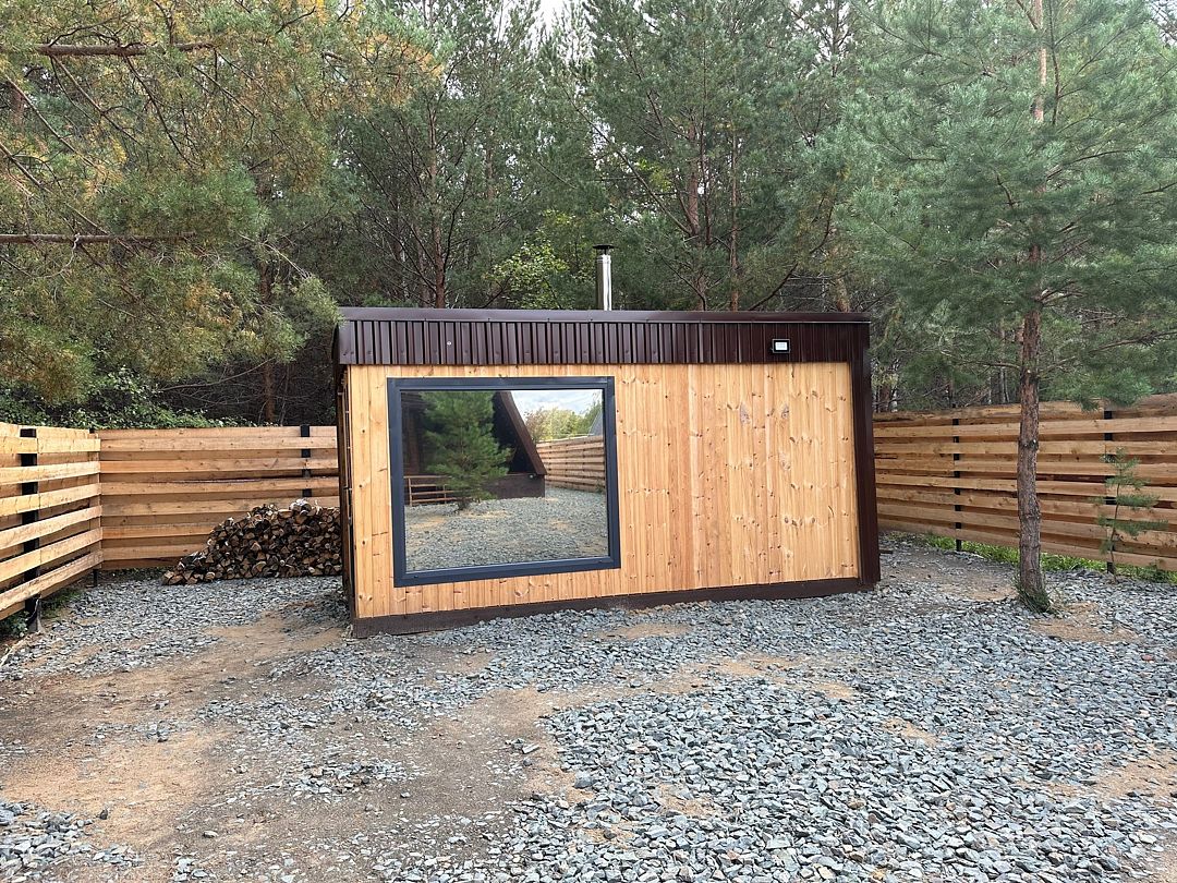 Баня на дровах с панорамными окнами