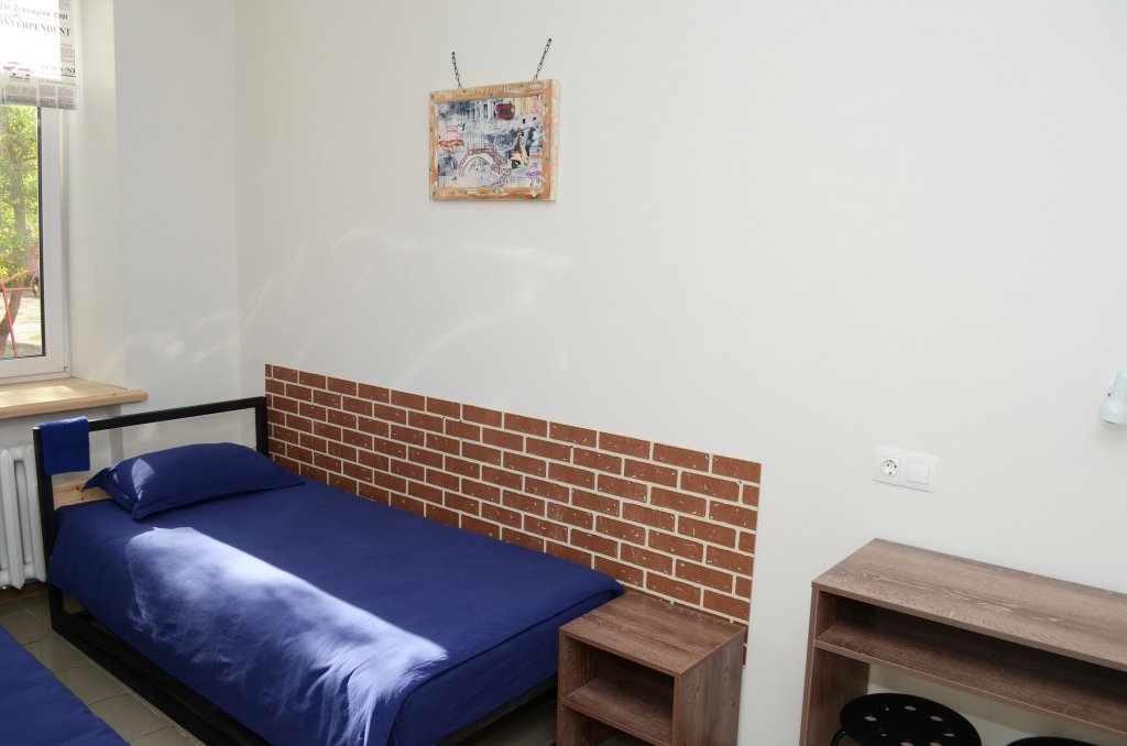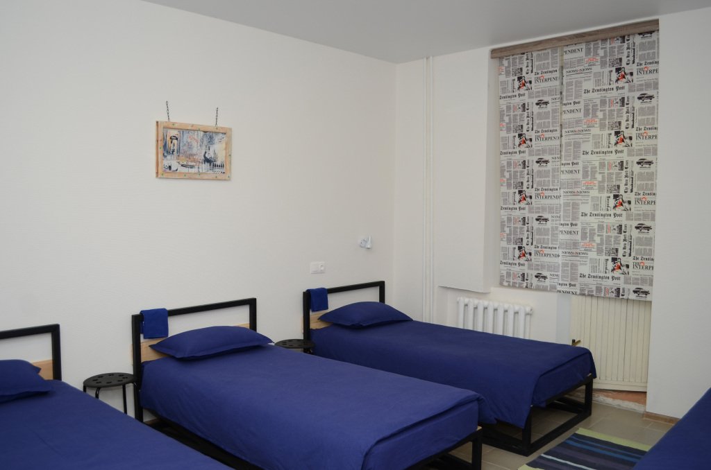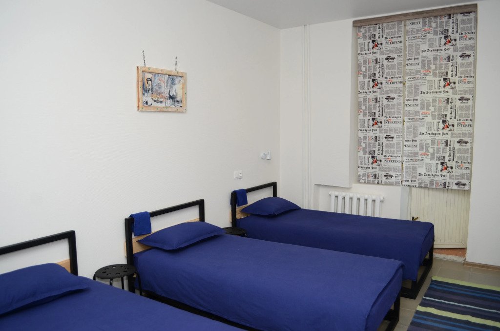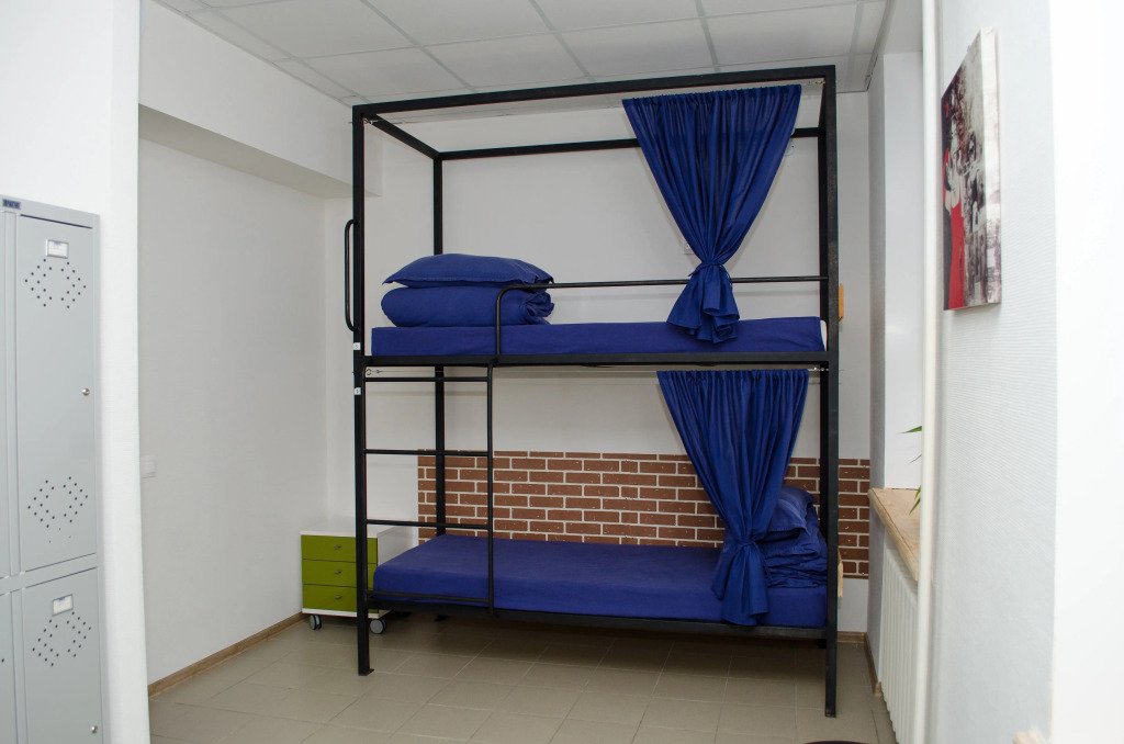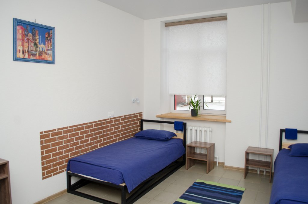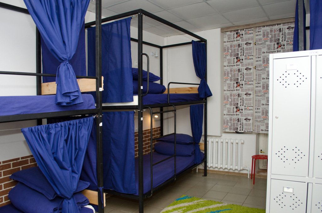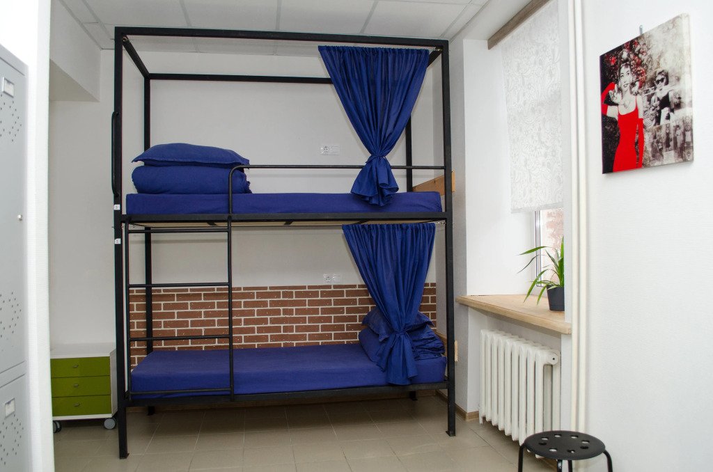 Кровать в общем номере с видом на город